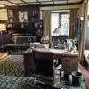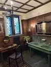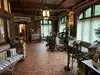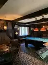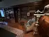 Classic "library" with wood panels. Decorated in period style furniture, accents, rugs - all of it - almost like you've walked back in time. The "great hall", the "plunge" (code word for the indoor pool), lead pane windows, decorative trim outside - and MUCH MUCH more.