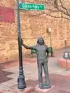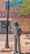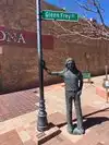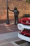 Located on 2nd street, there are statues on the corner as well as a red Ford flat bed ( listen to Eagles song). Take your picture with the statue and the red Ford will be reflected in the store window behind. Across the street is the huge souvenir shop.