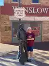 Visited Winslow AZ for the first time recently. Can’t go to Winslow without checking out the “Standin’ on the Corner Park” made famous by the Eagles song Take it Easy. The weather was cool that day so there was only one other tourist group there. It’s very cool with statues, great signage, the flat bed Ford, etc. Of course, we had to take our picture there ! There are also several gift shops and restaurants in the area - not much else going on in downtown Winslow. Fun stop - don’t miss it if you are passing near Winslow AZ!