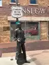 Stopped on the way to Painted Desert/Petrified Forest National Park. There are 2 statues and a flatbed Ford on the corner. On a building behind them is a mural about the song. Huge Route 66 sign painted in the intersection. Two gift shops across the street one playing Eagles songs on a loudspeaker. Worth the time to stop for a half hour or more.