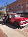 Everyone has to do this - there is nothing to it but somehow it is just a lot of fun. It's easy to stand there, no one ever takes long. Yes there is a flat bed ford parked there too. The building behind is actually a well painted wall - you'll see if you walk around. The two stores on the corner are doing a great business being in this spot. Luckily near some good restaurants so you can just walk over, though we found parking easy enough, and no meters!