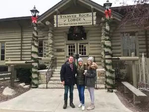 My husband took me here for my birthday weekend and it was surprisingly lovely! We stayed in one of the Sunset Cabins which are set just behind the Main Lodge. It's on top of the bluff so really nice views. The cabin is actually part of one big cabin made into 4 individual cabins each with their own fireplaces, bathrooms and entries, so you do feel like you are in your own cabin and you are, but you are sharing 1-2 walls. They do enforce quiet hours from 9pm to 8am. Also, if you have allergies or asthma be aware that the cabins with real wood burning fireplaces do smell like a smoke house! I didn't mind and I like the smell but I could see how it may be over powering for some. They do have some cabins that have gas fireplaces so they may be less smokey smelling. It was super rustic and nice though. Housekeeping is super friendly and attentive. The Main Lodge has a dining room and also a veranda (side note you can bring your dogs to dine with you on the veranda, they even have a doggie menu and bring out a bowl of water for them) and bar area as well as several coffee shop/snack places. The food was terrific, I don't think there was any meal we had that we didn't like. Staff was all really friendly. There is an in-door pool and jacuzzi which is really nice. We had a couples massage with Jeff and Sherri that was amazing, they actually have a massage cabin. It was a great get away and we live just outside Chicago so it's only an hour and 15 or so to get there and you really feel like you are "away". The hiking is great and there are always things to do, the Illinois river is right at the bottom of the bluff so if you like fishing or boating or kayaking they have it! There are also great restaurants and shops in the small towns that surround the property if you feel inclined. All in all a great get away from the city and suburbs!