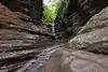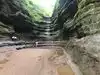 We were in parking Ottawa parking lot by around 9am on a Sunday, no crowds, ran into one family and one couple. We were prepared with change of shoes and socks as we don't have waterproof hiking boots. It rained the night before and was very muddy but my 7 year old enjoyed it, my wife not so much. Couple areas a little challenging trying to find least amount of mud and crossing the stream. Both the Council Overhang and Ottawa Canyon were great. I wasn't sure if could make a loop to Kaskaskia and back to parking lot as the map on starved rock website you can't tell. It is a shame people carve their names into the Council Overhang! Something as beautiful shouldn't be defaced.
