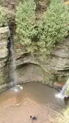 Great state park with beautiful views and wonderful trails. The trails are very well marked, and provide a good amount of exercise. Not overly challenging, but be prepared to climb and descend many steps. It is very pretty and has some interesting history. Unfortunately we were there in the fall and the waterfalls were dry. It would be spectacular to see them running at full strength. However, on the plus side the trails were fairly empty and having them much to ourselves was very nice