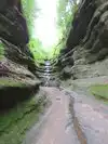 I very seldom give a 5 rating but I just cannot help myself here. This State Park is absolutely excellent. We hiked in the park on three different days accumulating a total of 6.4 miles. The trails leading from the Visitor Center are wide, comfortable to walk on, are boardwalks at times; but there are a lot of steps. I wouldn't necessarily recommend this for anybody with a stroller. (See photo of one of the set of steps we climbed), All of the boardwalks and steps were made of lumber that was probably 3-inches thick so there was no question about safety. You can get some information about the park and its trails on-line; but I strongly suggest a visit to the Visitor Center. There you can get (one per family) a very large map of the trails throughout the park. Illinois Department of Natural Resources staff members are there to provide you guidance and suggestions. During a weekday approximately 1500 people visit the park. On a "normal" weekend there are 3000-4000 people in the park, and we were told that on holidays the people count soars upward to 7000. So plan you visit carefully. Some of the canyons can only be seen from above; but other canyons you can walk all the way into depending on the amount of rain in the past in the area.