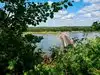 Inside the Visitor Center, we walked around the educational area, learning about Starved Rock. Looked in the gift shop - books, patches, and stuffed birds - but didn't buy anything. We felt sorry for the two Gars, Catfish and Crappie fish in a tank that looked too small. We didn't take one of the hiking maps. No energy to hike in this heat (94°).