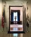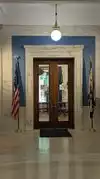 Open door policy to the governor's office. Beautiful office entry with chandeliers.