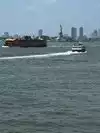 同時,也遇上了一艘回由 Staten Island 開出,回程去 Manhattan 的《Staten Island Ferry》。本來,這一個渡輪是包括汽車渡輪服務的,但於1992年舊碼頭失火後,而修建的新碼頭並沒有設立汽車入口而停止了。現在,只載人同單車。