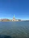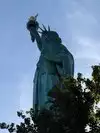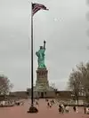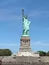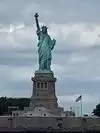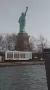 It's the Statue of Liberty, which any visitor to NYC will already know about, and very likely seen in movies, TV shows and pictures. You have a few chances to see her from water, either by ferry (the Staten Island ferry is free) or on a cruise boat, which will get you closer. But being on the island with her gives you a real sense of her height, and gives a real feeling of awe.