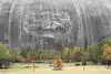 It is very impressive to see how the carving in the stone mountain seems so real, you must take a picture with this background.