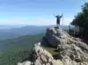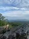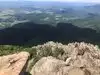 Parking lot available but small so if filled must park where available on grass. Trail easily marked & up hill climb to the top. Moderate trail with some rocks but not a hard hike. Try to pick a clear day to see the views. Not a lot of space when at top where the rocks are as everyone wants to take pics.