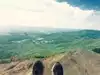 My sons insisted that I come along too along with their father for this trail as it promised a beautiful view at the end of the hike....I am not much of a walker and so I was shying away from the trail! But am I glad that my sons coxed and cajoled me to walk with them atleast this once ! The trail was an easy hike though I must confess,I had to stop twice to catch my breath !! I continued till the end as I could see happy faces returning from the summit and now i was looking forward to the view.Lo and behold after walking for about half an hour we came to these beautiful boulders on the edge of the valley,giving us glorious views of the mountains and the rolling meadows below...what a beautiful sight it was ! Made me forget all my tiredness ..we sat on the rocks soaking in the beauty for a good 20 min.Then the walk back was easy peesy ...