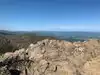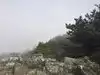 The summit was rocky but my view was kept local due to the fog yet it felt to be on top with no other visitors. Having a great hike to the summit so near a Lodge was terrific. Travel up and back was about one hour. There is a small circuit trail at the summit so you can do a loop. It also crosses a horse trail so you can return as I did with different scenery.