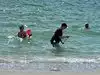 We didn’t swim as we weren’t brave enough, but there were about 8 people in the water.