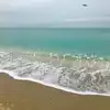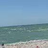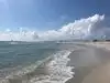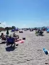 Nice clean beach , fairly busy for a Monday . The waves were a little rough. We found lots of shark teeth just lying on the beach. Water is a beautiful blue color. Would definitely go again.