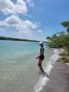 Love this place!! Long walk to the pass through mangroves and cactus flora. Have seen large turtles and lemon sharks. Great snorkeling at slack low tide. Sometimes dolphins in the pass. Great shelling!