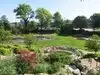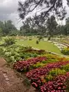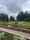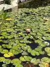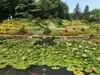 Lots of flowers and other plants here. Tiered flower beds going down to ponds filled with lily pads is very nice. Some fish in the water as well.