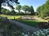 These gardens are lovingly planted each spring and grow into beautiful gardens in the summer. They also decorate for Christmas with lights. There are fountains and coy ponds great for making a wish or entertaining younger children. Restrooms, drinking fountain, gazebo, benches. A beautiful place to take photos, have a wedding, walk through on a date, or just take in the relaxing atmosphere solo. It's set below street level and feels a bit private despite the fact it's located next to 2 busy streets. Small off street parking lot. Absolutely free to see. Be sure to go up to the top and behind the waterfall for a relatively private tree lined garden area perfect for a picnic. It's located right off a bike path, so you can bike here too. Bring your bike locks as there are racks available.