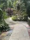 Beautiful garden walk with Makaws and Flamingos adding more color to the walk.