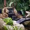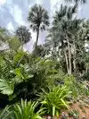 Compact. Vintage feel. High density of tropical plants and trees with an unusually large and rare collection of Madagascar palms, plants, and trees interspersed. Mature growth provides a shaded canopy. The small assortment of parrots, flamingos, macaws, tortoises, and koi add to the tropical setting.