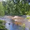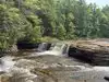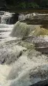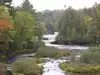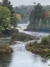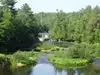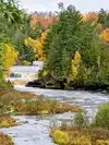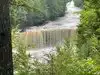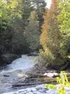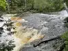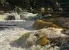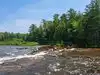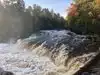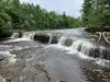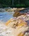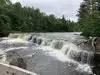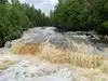The Falls Lower and Upper are unique with the brown streaks in the falls. The water is notably brown in color from the tannins leached from the cedar swamps which the river drains. Mosquito repellent is mandatory.