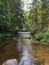 Then we hiked the 4 miles back - the trail between the two was about two hours each way and some of the trail was washed out so muddy. Not a place I'd want kids if they only had one pair of shoes for the trip. But we did NOT have any issues with bugs, didn't even pull out repellent, and it wasn't too crowded and at least some of it is near the river with pretty views. If the shuttles had been running we probably would have preferred to hike just one way.