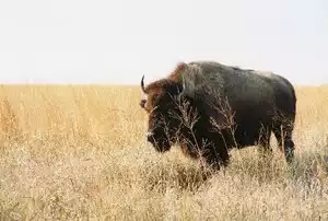 Bison: They are not tame and can easily run faster than you can. Respect them and keep your distance.