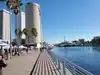 Nice lengthy walk from canal area all the way north on the east side of Hillsborough River. Lots of tours and recreational activities, a few drinking and eating options. As you walk north near the art museum, you can walk up steps to Cass street level and cross the street/train tracks to reach the Straz Center and pick up the waterfront trail all the way north to Waterworks park. It’s rarely shaded along the way so can be very hot in direct sun. Be also on the lookout for cyclists and rollerbladers who can zip by quick - just keep your eyes out. And if you aren’t keen on the walk, you can take the Water Taxi instead.