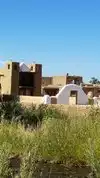 Taos Pueblo is a sovereign nation located 3 miles NE of Taos and is a UNESCO Living World Heritage Site as well as a National Historic Landmark. Taos Pueblo has been continuously lived in for over a 1000 years. (Acoma Pueblo, west of Albuquerque, has a similar distinction). Homes in the Pueblo (communal village) are made of Adobe with ladders providing access to the upper levels. There is a running stream that bisects the Pueblo. This stream is the main source of drinking water for pueblo residents, and further down the stream, a source for fish. According to a website I visited, "In accordance with pueblo traditional laws, Taos Indians who live inside the ancient village do not have running water or electricity. They rely on skylights or kerosene lamps for light, and use outhouses that are hidden from public view".