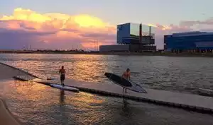 Walked here from my hotel early in the morning and took some nice sunrise pictures. The bridge(s) also provide some good photos! Very quiet early in the morning. Lots of families later in the day using the splash park, etc. Didn't try it out but they have kayaks and paddleboards that you can rent as well.