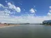 It's actually not a beach in the conventional sense. It's a man-made resevoir for boating and fishing.