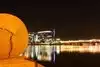 We were there on a Sunday night walking off our dinner, and the place was hopping with folks out for night-time bike rides, walks, fishing. Huge waterfront park. Check out the train bridge with the changing light show that reflects in the water. Very lovely!