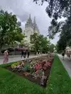 Fountains and flowers everywhere. Went to the roof top above where the Tabernacle Choir was practicing and there where pine trees and fountains there too!! Beautiful - need to see once in your lifetime.