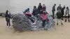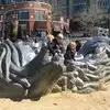 This is a 70 some-odd foot sculpture of a giant man struggling to climb out of the sand. Only parts of the head, hands, feet and one knee are visible.