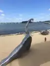 Neat display right on the water. Kids were digging in the sand, climbing on the hand, head and arm of this mythical creature. Very cool
