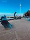 Great, partially submerged-in-sand metal Neptune sculpture. Kids love to climb on it, a great spot for photo-ops. You first see a huge arm and hand emerging from near the water. When you get closer, you see it is the head, feet and arms of Neptune. As a companion remarked, "Thank Goodness some of him is buried!"