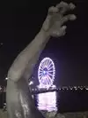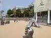 I really like this thing. It's a pretty area at sunset with the Ferris wheel and the giant breaking forth from the sand. There are several unusual sculptures in the area, including a naked fat man on a turtle.