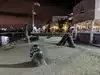 Didn't know this existed until we walk up on it. Very cool sculpture. It looks like the kids were enjoying playing in the sand and climbing on the various parts. on the other side on the sculpture is an enormous screen. We got a change to watch on of the hockey playoff games while snacking on some treats