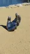 Taking into account that most of the body is not visible, I initially thought it was the statue of a swimmer. I guess you can also think of it as a guy who wakes up and you see only the body parts that come out from under the bed sheet (sand). This statue is especially fun for kids. They attempt to climb on the face and on the limbs. The most attractive seems to be the knee, where the kids line up to climb, then slide back down (pretty bumpy ride and not the safest slide). As an added "benefit", they get metal residue everywhere their body or their clothes brush against the statue.