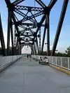 Nice walk across the Ohio river with cool view of downtowns Louisville and Jeffersonville. The access to the bridge is limited to pedestrians and cyclists.