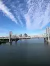 Was pleasantly surprised by the bridge. We had an hour to kill and decided to check it out, beautifully maintained, excellent view of the city and waterfront. Lots of people exercising there, running/biking/etc. Only walked halfway across but glad we made the stop. Small parking area but we went early so had no issues finding a spot. Bathrooms are available next to parking area.