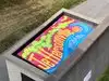 Along the bridge there were a number of old steel boxes converted into signs detailing the history of the bridge and its conversion. Around the center the speakers came on and started blaring some music.
