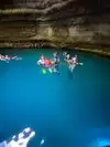 Do wear your swimsuit under your clothes when you get there, they tell you that on the phone - important to do it. Changing room in tunnel on steep hill VERY NARROW changing area - I am 6 foot even 229 pounds and I BARELY fit. Port-a-potties outside entrance to use bathroom - they were dirty and smelly. The tunnel for what you can see - my wife and other people in group hit their head on cave walls while swimming because it was incredibly dark. Another gentleman there said he's been there often and it was first time that he was there with the lights off, he told me the owner was the guy at the entrance desk. I went up to him and asked if he could turn some lights on that are in the cave that you can see and even the ones under the water that the gentleman in the water told me about he told and I quote " we do not turn on lights unless divers are in there, because swimmers can see by opening there eyes" he said it like he was being nice and sarcastic at same time. I should have told him off but I am retired from the military my drill Sergeant days are over. Another thing about changing rooms your waiting before AND after to get in them people coming out need them and people coming in need them and there is about 6 of them. Your time starts EXACTLY on the scheduled time whether your changing or not or waiting to change. We got there a hour before our time, the nice beautiful redhead at the activity center told us she had cancellations so we could get in right then. We got in the entrance at 12:11 We got in the water after changing at 12:39 PM the guy told everyone in the water to get out at 1:17 PM that it was the next people's turn and our time was up. So we put our mandatory lifejackets up and waited 24 minutes from time I was reminded to start timing it, we waited for people to change that were leaving with us and people coming in to get into those few tiny changing rooms. Water was very nice temp and clean, that we could see next to the swim platform. The things that NEED to be changed is changing rooms built at entrance better AND MANDATORY need some lights on, if they're to cheap to leave on use solar through hole, being in the dark hitting the wall is a lawsuit waiting to happen - then the light bill would be chicken feed to the cost. One thing I want to mention this is EXACTLY what happened to me and my group. I did NOT make up ANYTHING. If someone is saying a review is a lie it is one of the workers or owners trying to cover it up. If there was some lighting on to help see the wall I probably wouldn't have wrote this. I urge you though, whether you believe my review or not wear your bathing suit under your clothes to save yourself and others some precious water time.I was warned to do that and some others before we got there and we learned it was a bad mistake. I hope this helps someone.