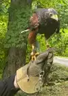 Seeing the variety of birds and interacting with them was great - falcon, eagle, owl, hawks. I think the small eagle was very nosy & friendly - it kept looking through the window at us and "talking". It was very interesting to hear the history, see the training methods, and "take a walk" with the Harris hawk. Of course, getting to have it perch on your gloved hand if you wanted to was the best! Thoroughly enjoyable all around.