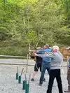 The whole experience was unique and exciting. The group split off in three groups to learn axe throwing, air rifle shooting and archery by rotating through all the activities.