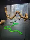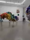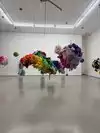 There are other fascinating exhibits: colorful stiffed aimals hanging from the ceiling in clumps.