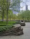 It is quiet and very neat. The area also has a nice view of the One World Tower since it is located at the base of it. It is fairly easy to get to with the World Trade Center station nearby. It is a nice place to walk around with your thoughts.