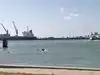 As the waiter on Mustang Island suggested, the Port Aransas Ferry was a great way to see the dolphins swimming. The transit was about 10 minutes and VERY rough, but the ferry was very capably piloted.