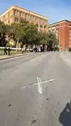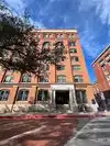 Some "JFK trolley tours" depart from one of the adjacent streets of the building