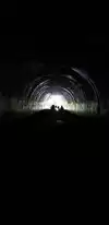 My son James Hand, his wife and I went up at night. I walked up to the tunnel in total blackness, no car headlights, etc. The photo you see was taken as James had his camera on a tripod and I used a hand light to illuminate the exterior, then walking forward I entered the tunnel while shining the light overhead in an arc. Then James told me to stop for a minute, and I did while still arcing the light overhead. The pause as I stood in place 'locked' me into the shot, and it also makes it look like I am still walking and my light is shining ahead. I then went the rest of the way, still arcing.